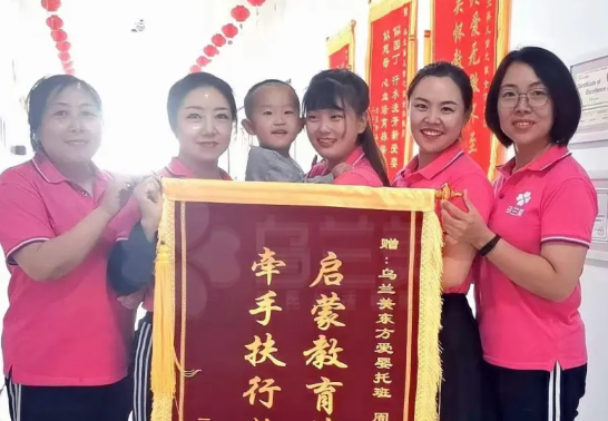 近期,烏蘭美早教中心托班王浩然小朋友的媽媽,為表達(dá)烏蘭美早教中心老師們對(duì)孩子的辛勤教育和悉心照料的感激之情,將印有“啟蒙教育第一師,牽手扶行始登峰”的錦旗送到老師手中,感謝托班的周靜老師及全體老師們,更加感謝烏蘭早教中心擁有如此出色的師資隊(duì)伍。